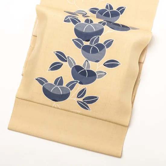 染九寸名古屋帯 栗山紅型 変り生地 立付橘