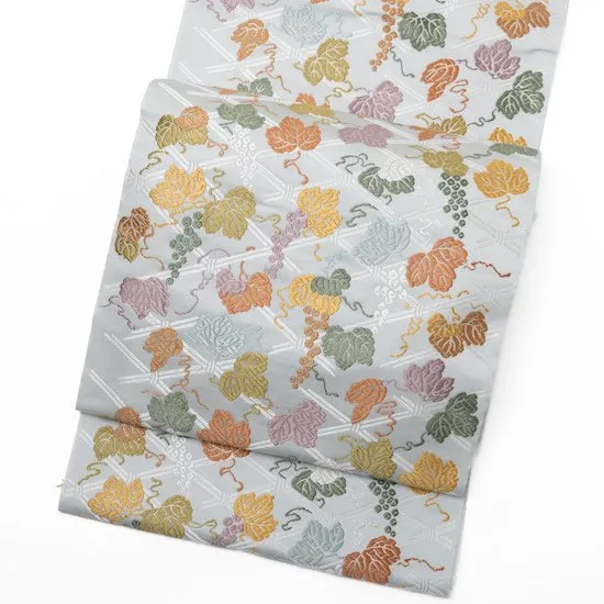 織九寸名古屋帯 みやこ 竹垣にぶどう文