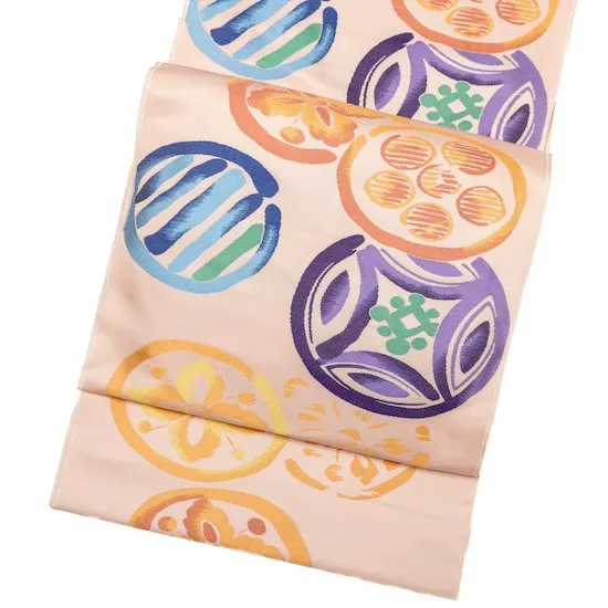 染九寸名古屋帯 栗山紅型 変り生地 立付橘