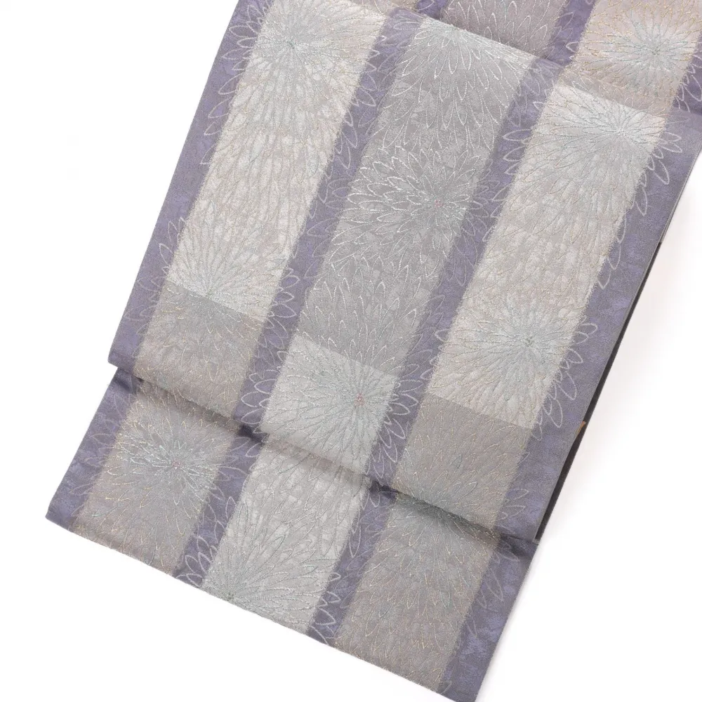 染九寸名古屋帯 栗山紅型 変り生地 立付橘